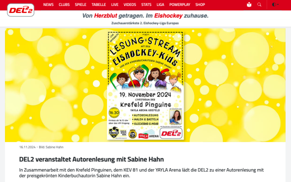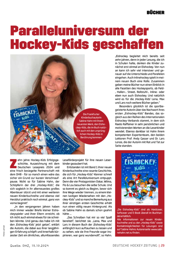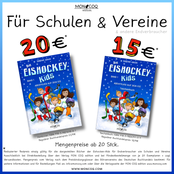 Ausgezeichnet mit dem Deutschen Lesepreis 2024, widme ich mich nach mehrfachen, langjährigen Anfragen kleiner und großer Eishockeyfreunde nun, zusätzlich zu meiner beliebten Kinderbuchreihe der Hockey-Kids, dem Eishockeysport, um Kinder für das Lesen und für das Eishockeyspielen zu begeistern.